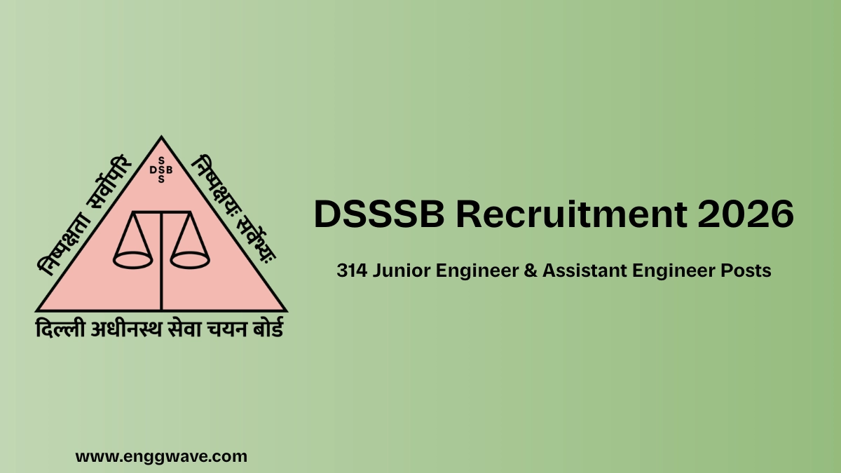 Quick Summary: The Delhi Subordinate Services Selection Board (DSSSB) has officially released the notification for 314 vacancies for Junior Engineers (JE) and Assistant Engineers (AE) in various Delhi Government departments. This is a massive opportunity for Civil Engineering graduates and diploma holders. Applications are open from February 24 to March 25, 2026.