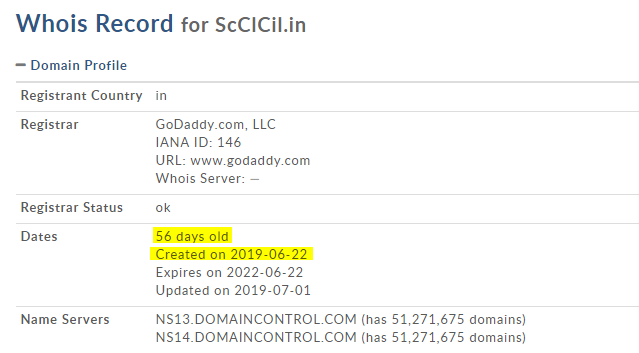 I have also cross verified the domain name as its recently registered on 22nd June 2019. Please see the attached image. I have already complained regarding this domain at Godaddy.com