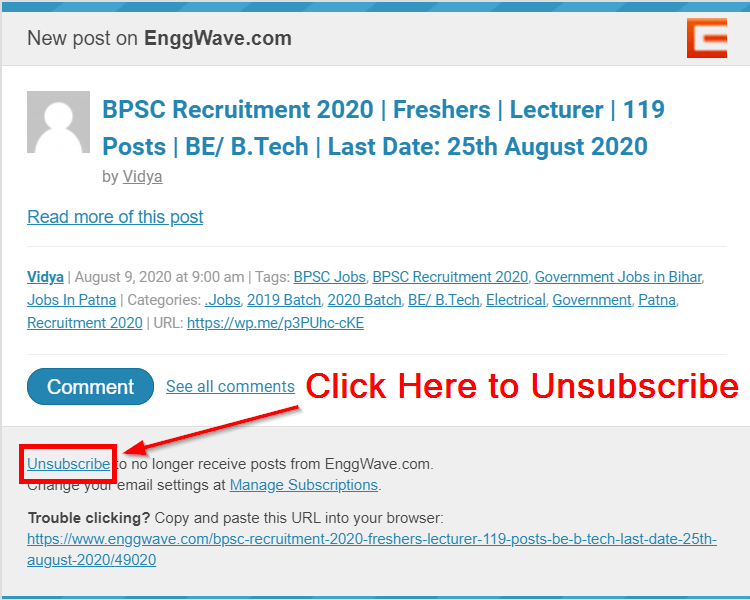 If you are following any WordPress website and receiving too many email notifications and if you want unsubscribe from email notifications see the below tutorial for how to unsubscribe.